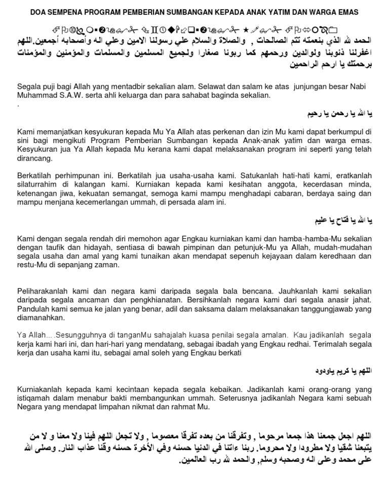 Doa Sempena Majlis Pemberian Sumbangan Anak Yatim Pdf